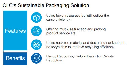 Leveraging the e-commerce boom and high demand for online shopping packaging, CLC collaborates with e-commerce customers to reduce packaging. CLC increases recovered paper use, improves structure and design for lighter, single-material packaging, uses water-based inks, and minimizes printing. Innovations include tape-free boxes, Design-in 3D platform, and sales forecasting system. AI data helps CLC meet market needs and reduce carbon footprints.